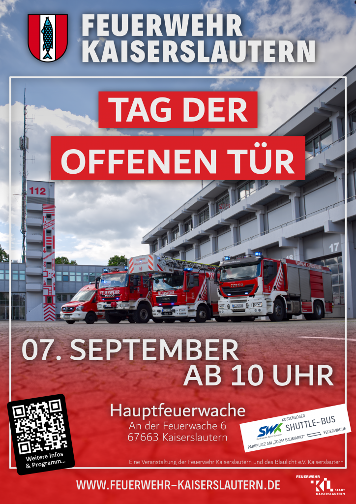 Am 07.09.2025 öffnet die Feuerwehr Kaiserslautern ihre Türen für alle interessierten Bürgerinnen und Bürger.